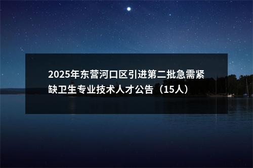 计划引进15名,详见《2025年河口区引进第二批急需紧缺卫生专业技术人才岗位计划一览表》(附件1)。